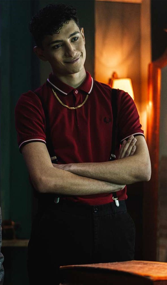 Charles is a half-Indian boy with short black curly hair he wears with notches cut into the sideburns, dark brown eyes, and a medium warm sort of skintone. His bone structure and the almost pointed ears give him an almost fox-like air especially when he smiles, which is often. He typically wears a red polo and bracers, and dark pressed trousers with white socks and brown leather penny loafers. He layers a burgundy Harrington jacket and a black wool overcoat with multiple pins on the lapels and patches stitched onto the shoulders, with a burgundy pocket square. As for accessories he has leather gloves, a single gold star earring in his left ear and a gold chain necklace.